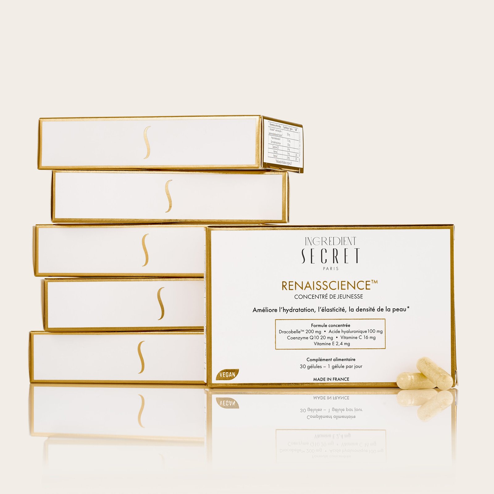 Our anti-aging supplement targets all the essential needs for flawless and radiant skin. RENAISSCIENCE® anti-aging capsules are recommended as a regenerative treatment for mature and/or dry skin. They are also indicated as a preventive treatment to be done regularly at the first signs of aging to counter the premature aging process of the epidermis.